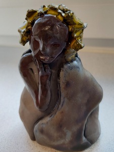 2020Dit beeld maakte in voor de vrouw. Omdat een aantal vrouwen om mij heen kanker, mn borstkanker, kregen en ik me daar zo machteloos in voelde. Hoe een lichaam je in de steek laat op het moment dat je ziek wordt. Maar als het niet ziek is lijkt het zo van zelfsprekend te zien. Dit vrouwenbeeld komt uit een roos, zacht en teer maar ook doorns ter bescherming. Een een beeldje ter verering van het lichaam, het lichaam dat jouw ziel draagt.